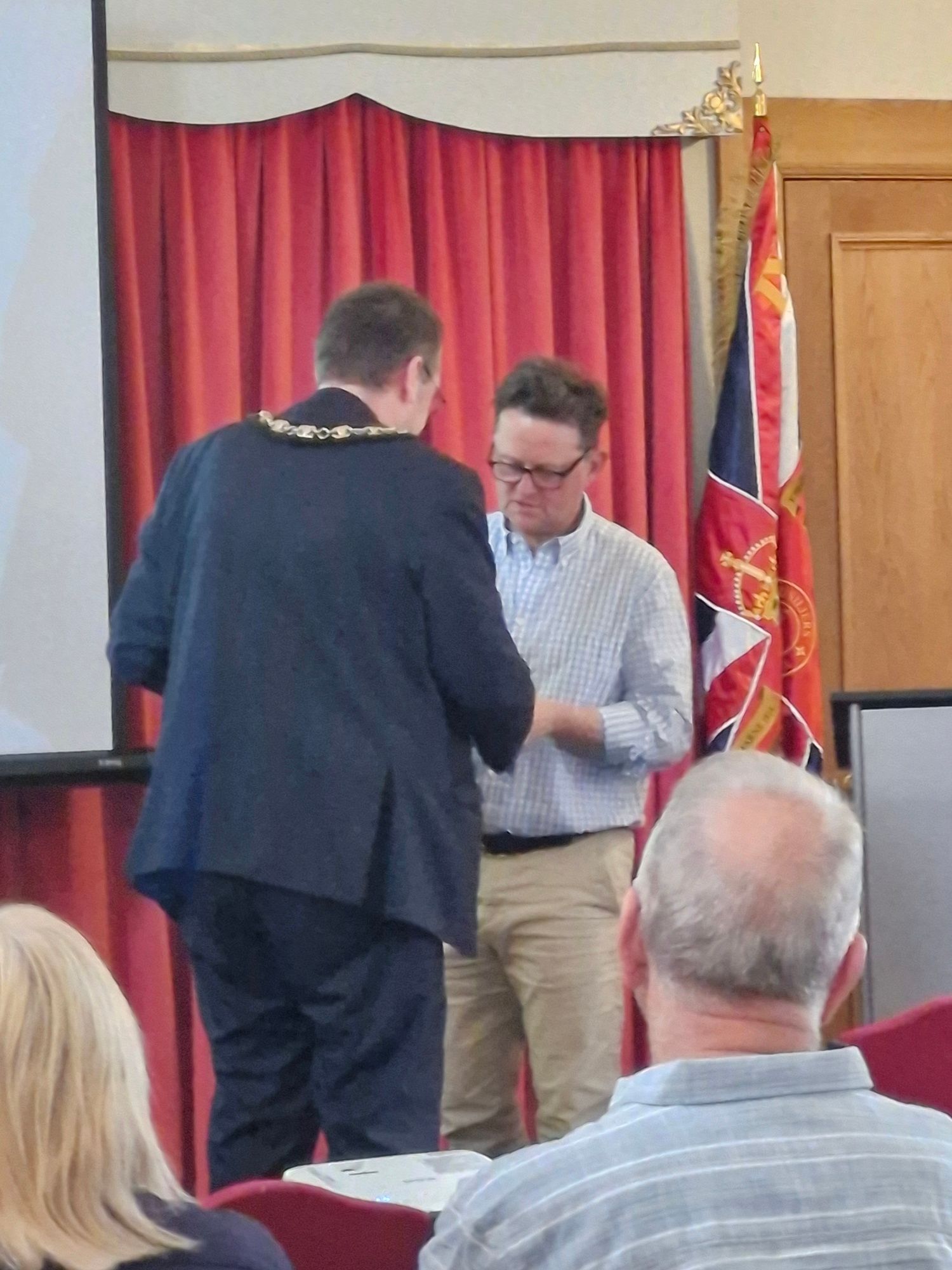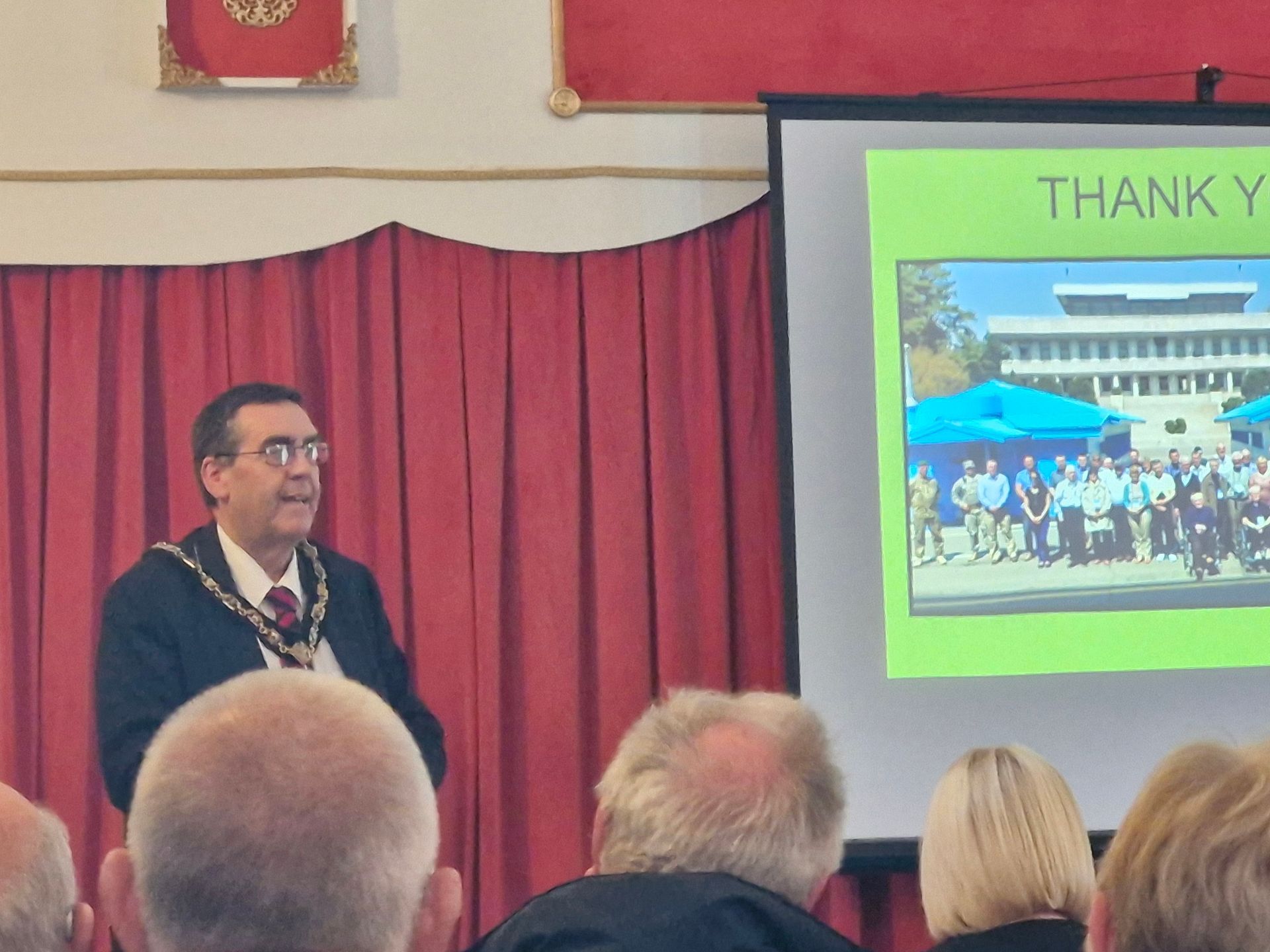 At the evening's conclusion, expressions of support were conveyed by the Lord Mayor of Armagh City, Banbridge, and Craigavon Borough Council, Alderman Stephen Moutray, and the charity's Patron, Lt Col Ant Maher. The charity's Honorary President, David Martin MBE, presented Korean War 75th Anniversary coins to Carol Walker MBE and Lord Mayor Alderman Moutray.