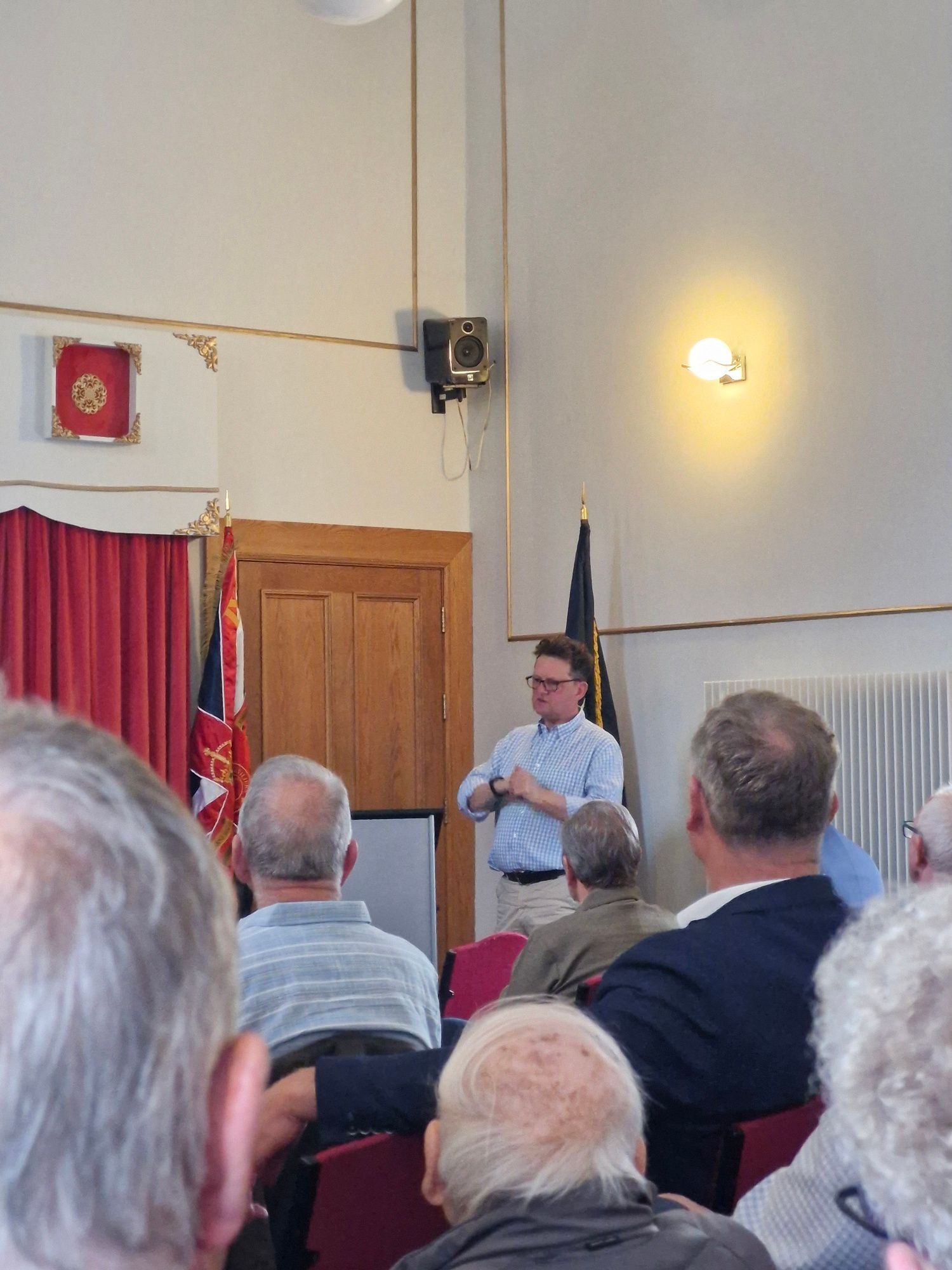 The evening commenced with David Martin, Honorary President of the Ancre Somme Association Charity, extending a warm welcome to all attendees. A resounding applause filled the room as David introduced the distinguished guest, Liam Beckett MBE.