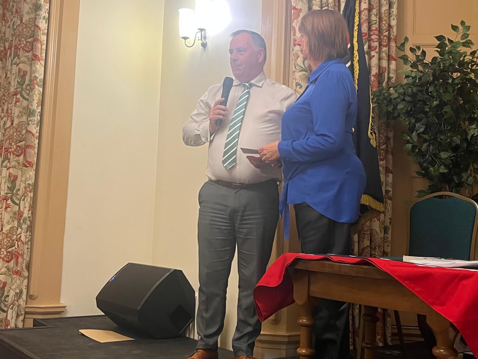 After the meal Liam took to the stage, as only Liam could, having some fun with those in attendance. He then conducted the raffle and became auctioneer as he helped raise some much needed funds in aid of the charity.